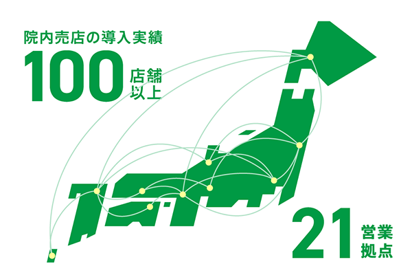 これまで「売るだけ」だった売店を、患者さんやスタッフに快適なホスピタリティを提供する空間へと進化させ、グループ連携による経営良化のご提案をいたします。